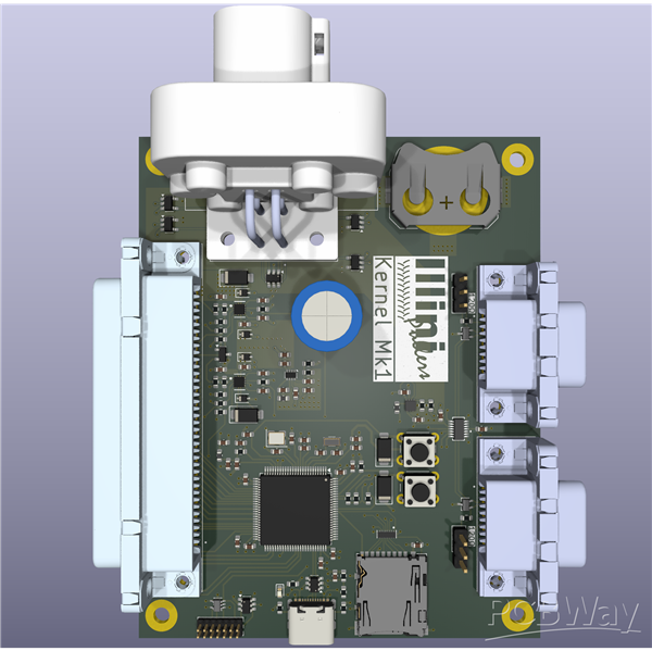 In parallel to Kernel, we are developing another PCB for power distribution. This board will connect to Kernel over a 37 pin connector so that the MCU can control almost 20 specialized load switches to drive current across the tractor. In addition, there are a dozen inputs for 12V and 5V analog signals. These allow us to easily detect faults across the system so that power can be swiftly cut to protect the tractor and the operator. For enhanced safety, every single input and output is protected with fuses and TVS diodes.