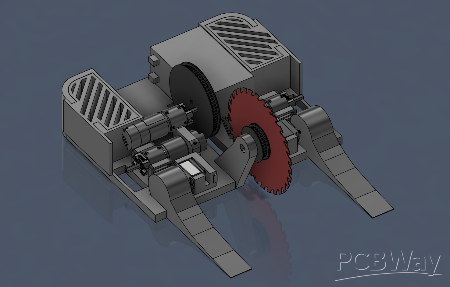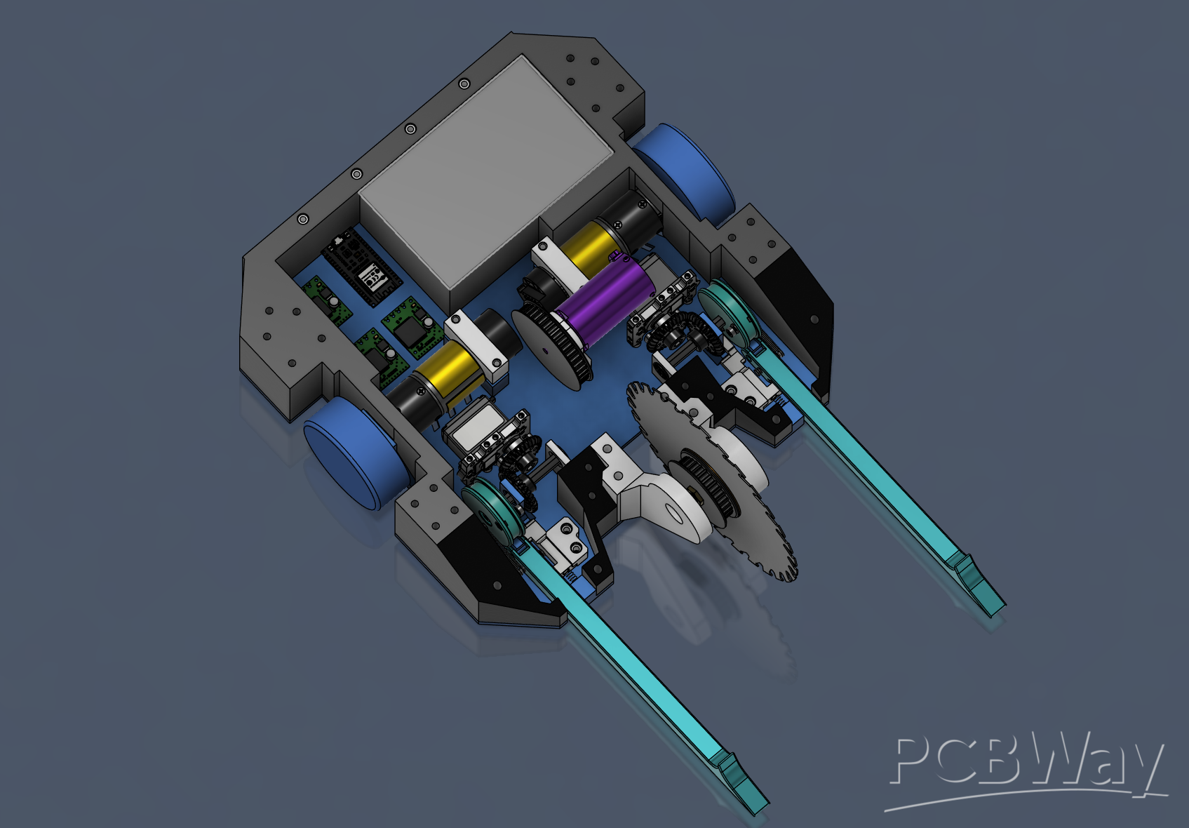 I do not have access to a CNC or any material fabrication, with the exception of a home 3d printer. Most of the robot needs to be made of metal (aluminum) to be able to withstand heavy blows and strikes from other robots. PCBWay would be a tremendous help with the sponsorship of these materials and machining them.