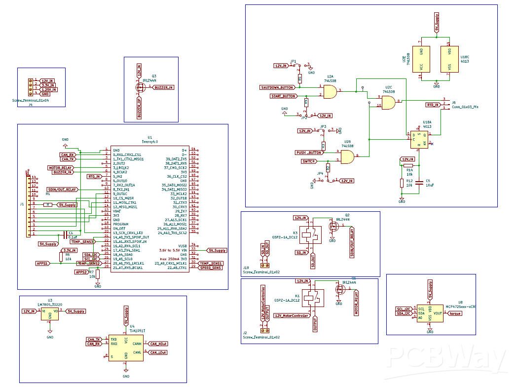 1. Power Distribution Circuit: The custom-designed Power Distribution Unit (PDU) manages the low-voltage power harness of the electric vehicle, ensuring safe and efficient distribution of power across critical circuits: