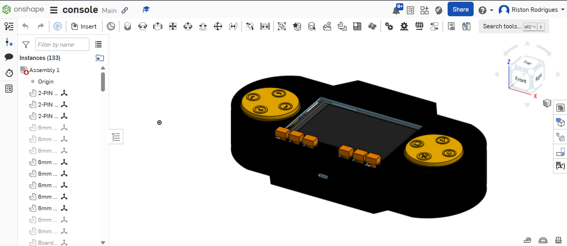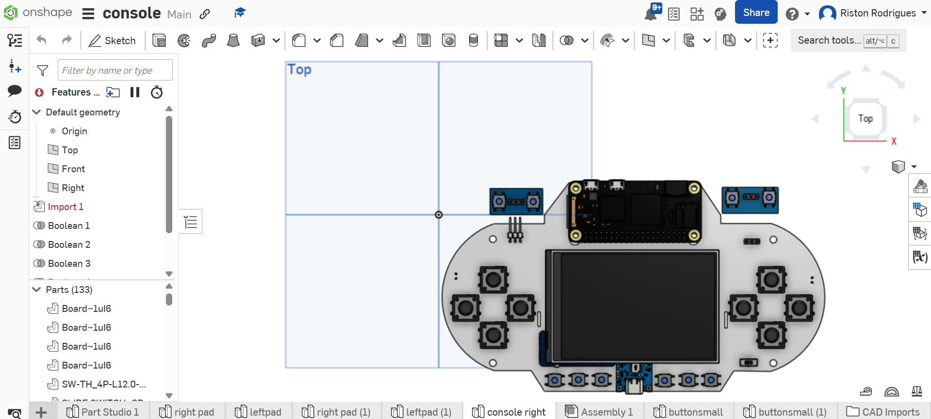 Case Design: The custom enclosure was designed in Onshape. By modeling the case around the finished PCB, I was able to optimize the internal space for a perfect fit for all components. This iterative process allowed me to refine the case’s shape and button placement, ensuring the console is both functional and comfortable to hold.