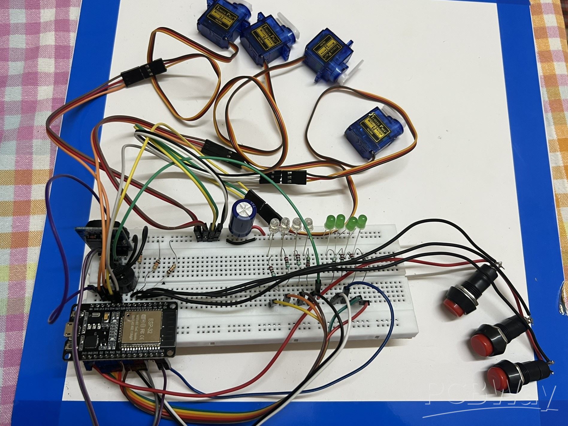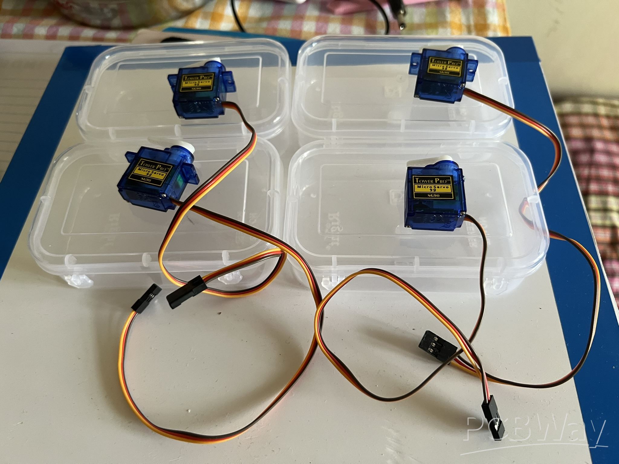 I am still left to build the final structure of the device, which will include four plastic boxes with lids (controlled by a servo motor each) and install all the electronics including the PCB. Then the project will be 100% completed.
