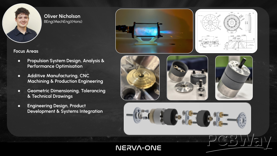 Support in SLM manufacturing would enable us to realise fully integrated designs, including internal cooling channels and injector features, that are not feasible through conventional methods. This would allow us to move beyond simplified prototypes and into higher fidelity hardware, accelerating iterative testing, validation, and overall system performance. Beyond functional hardware, one of the first things we would love to produce through a partnership with PCBWay would be a high quality display model of the engine as a thank you for the support she has given us. It would be a small gesture of appreciation for someone who has played such a major role in helping bring this project to life.