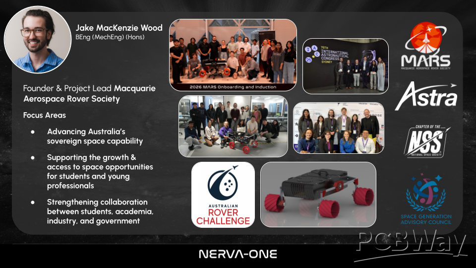 Jake is the Founder and Project Lead of the Macquarie Aerospace Rover Society (MARS). His work centres on developing practical aerospace systems, with a focus on propulsion, mechanical design, and advanced manufacturing, while contributing to the growth of Australia’s sovereign space capability. He is passionate about creating opportunities for students to gain hands on engineering experience and engage with the space industry, leading student led projects that bridge the gap between theory and real world application and foster collaboration between students, academia, and industry.