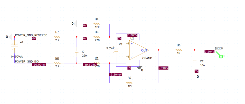 Differential Op-Amp Circuit. This circuit is designed to measure the small voltage difference across MOSFET terminals. By amplifying this differential signal to a level readable by the microcontroller, the design enables current estimation and feedback.