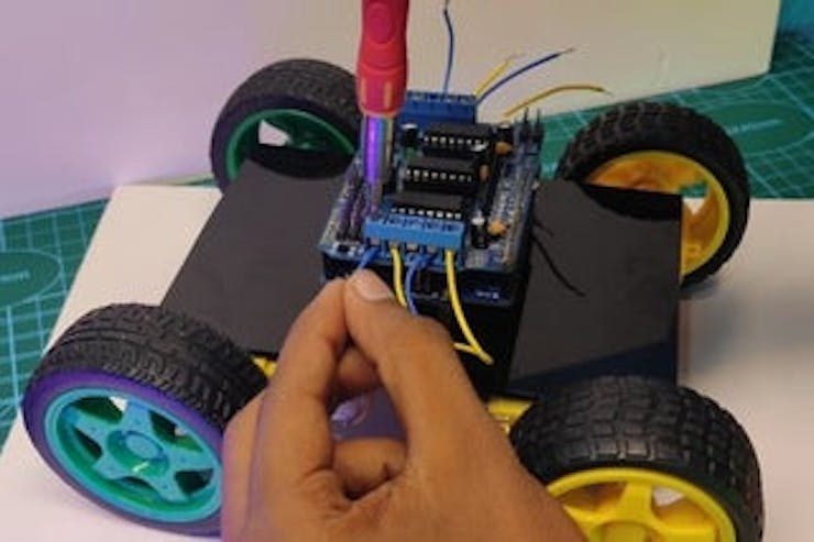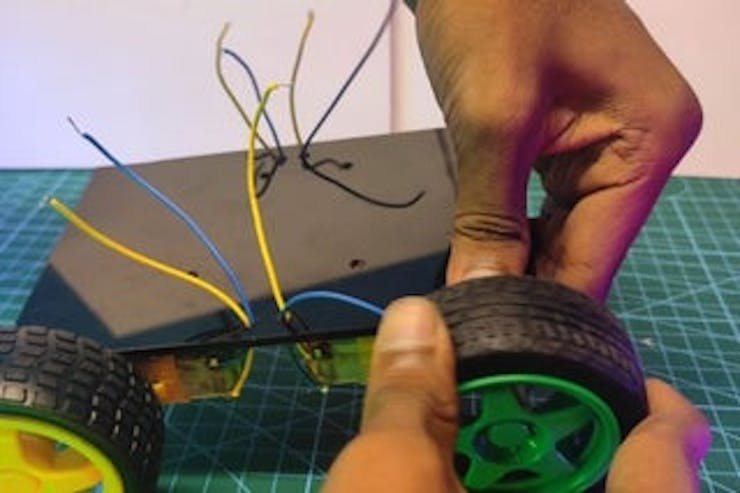 Connect the wire to all motors And then fix all those motors on the chassis with glue