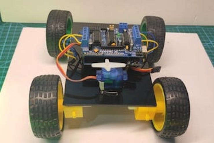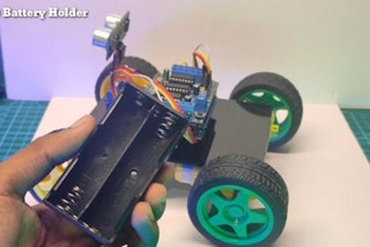 Arduino UNOMotor and WheelJumper CablesAcrylic Sheet For Chassis18650 Battery And HolderULTRASONIC SensorMotor DriverServo Motor
