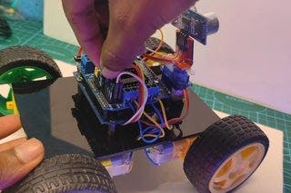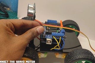 Step 7: Connect the Servo and Sensor Wire in Motor Shield
