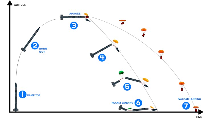The primary purpose of the Magnetar Pulsar Avionics System is to continuously measure altitude, angle, and acceleration data of the rocket using two pressure sensors (MS6511|BMP388) and a gyroscope(MPU6050). When the desired conditions are met, it activates the recovery systems to deploy the main and drogue parachutes. The operational concept is depicted in the visual.