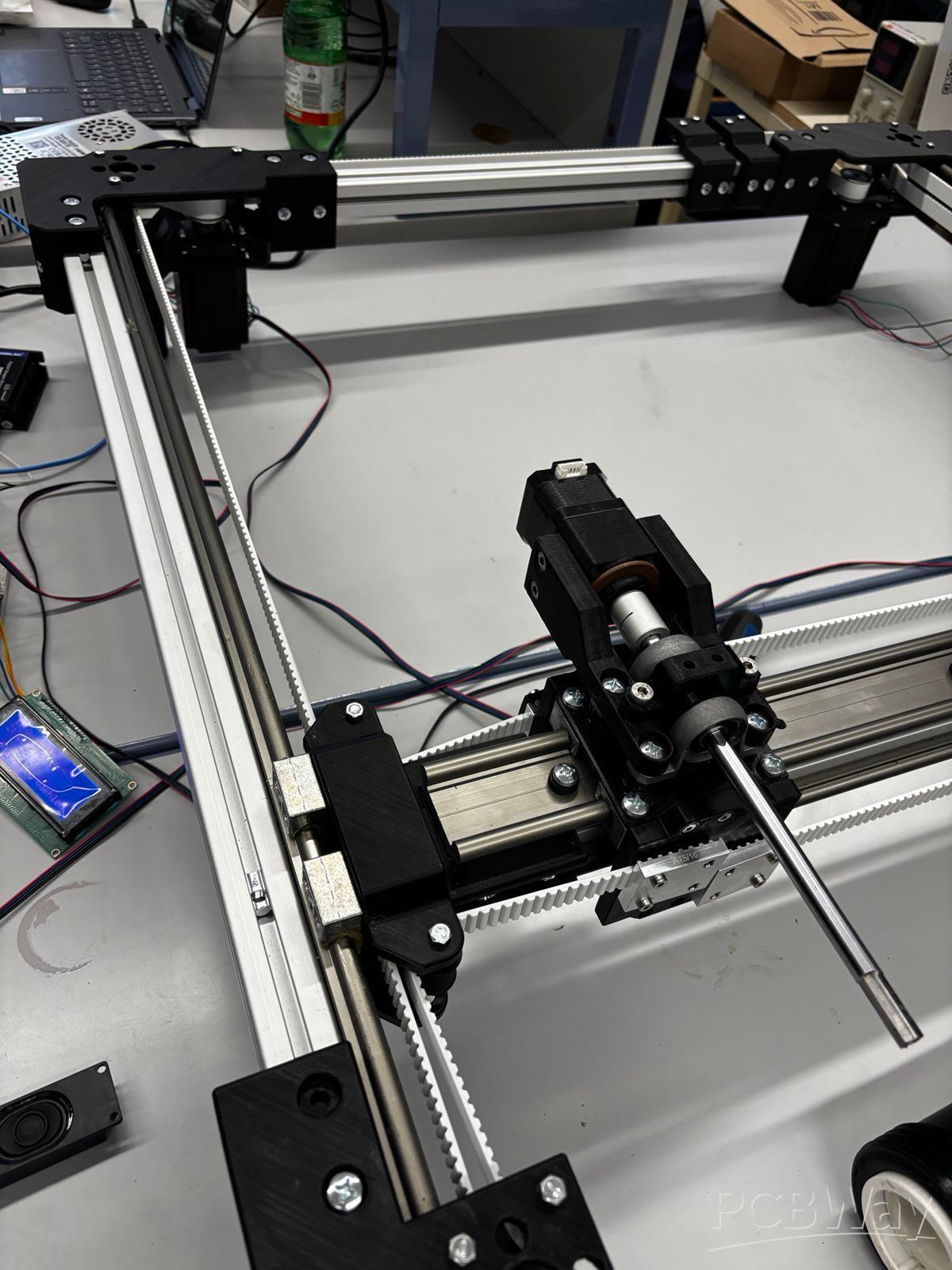 A motor-driven portal system moves in the X, Y, and Z directions.