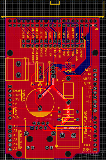 Because the two systems operate at different logic voltages, the design includes a logic level shifter so the Raspberry Pi and Arduino can safely communicate with each other. Power entering the system will be regulated through a buck converter, and the PCB includes screw-terminal inputs to securely connect that power source and distribute it across the electronics.