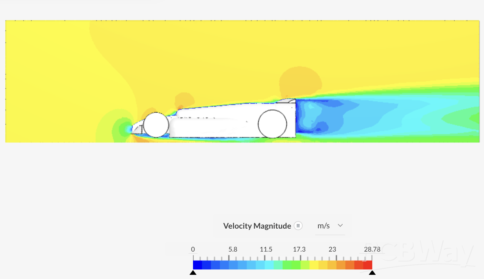 Each iteration of our car was put through the same simulation workflow. The results gave us a precise drag force value for every design, allowing us to make data-driven decisions for following iterations. From our first prototype, the RCR-05, we've reduced aerodynamic drag by 17.4%, only possible through improvements because of our simulation data. Areas of turbulent flow were eliminated, by shaping the body and wings of our car in revolutionary ways.