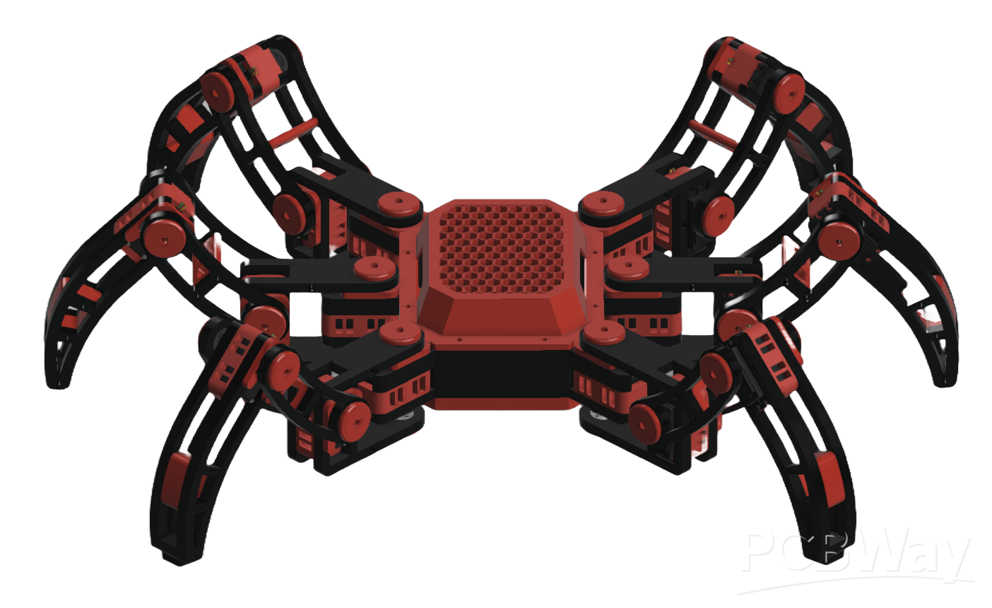 With this board, I planned to not only be able to control a servo motor's torque, position, and velocity using feedback from a better encoder, I also planned to be able to read and communicate back the current, temperature, position, and other variables back to a select microcontroller. This is for a bigger project, where I plan to connect all these servos to a hexapod robot, which the image could be found below.