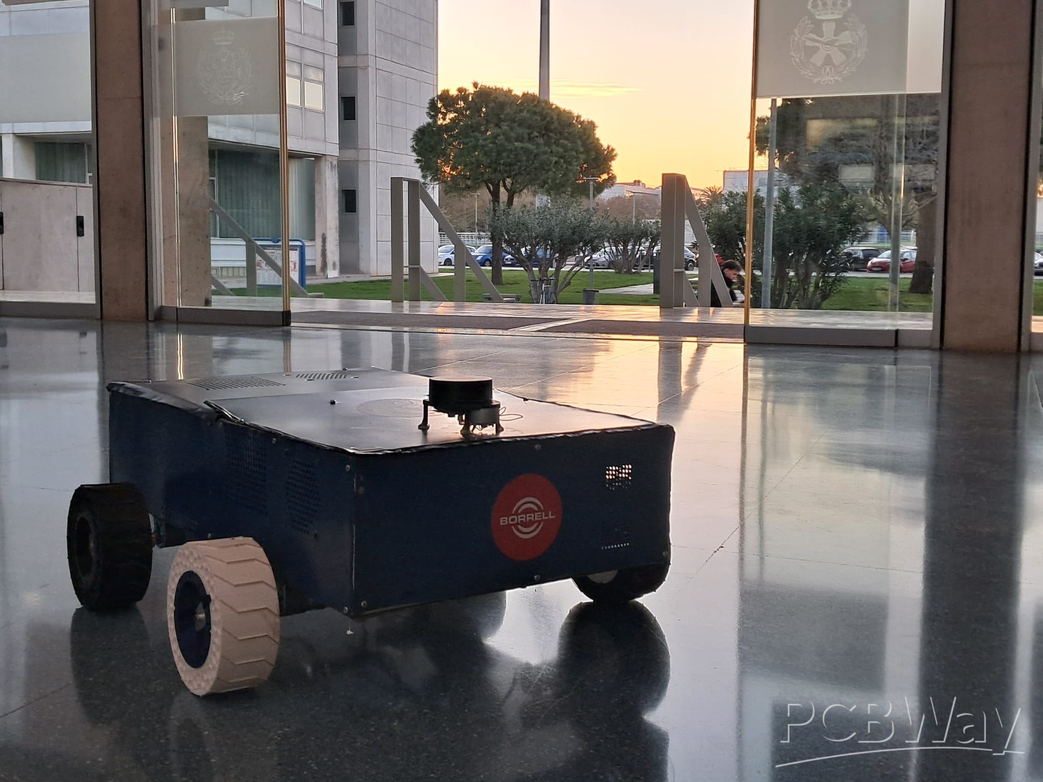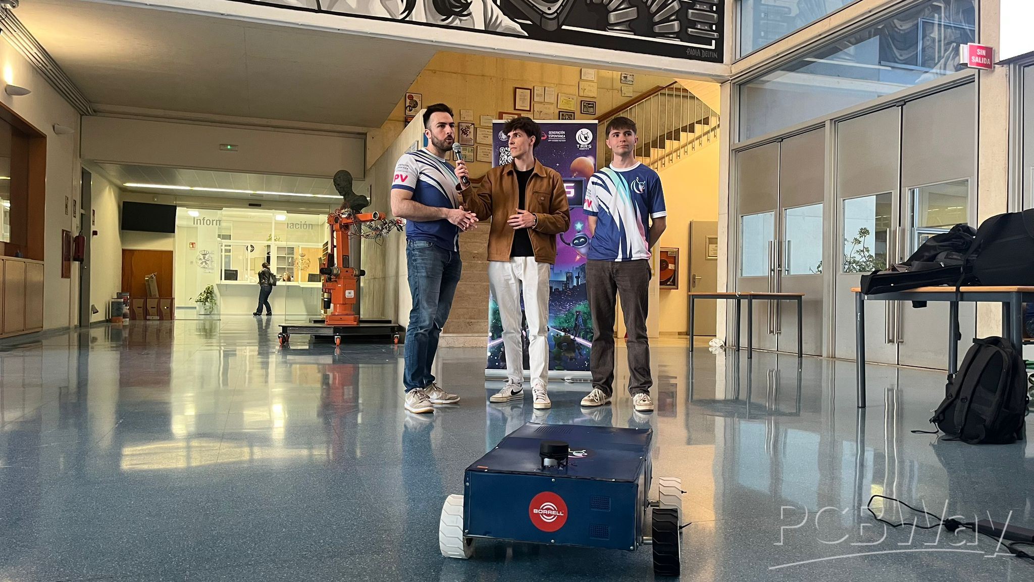 In this photo you can see us presenting our current Rover called 'Rober-T0' on a university event.:
