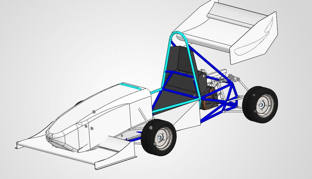 The development of our car is a collaborative effort involving multiple subsystems, each focusing on a specific aspect of the vehicle. Our Design team works on the overall vehicle concept and integration, ensuring all subsystems come together as a cohesive system. The Chassis team develops a strong and lightweight frame, while the Powertrain team focuses on engine performance and drivetrain efficiency. The Vehicle Dynamics (VD) team works on suspension, handling, and overall drivability to ensure stability during dynamic events. Alongside the technical teams, our Business and Management team handles procurement, sponsor relations, and financial planning, while our Media and Marketing subsystem manages outreach and promotional activities. Together, all these subsystems directly contribute to the car’s performance, reliability, and overall success in both static and dynamic events.