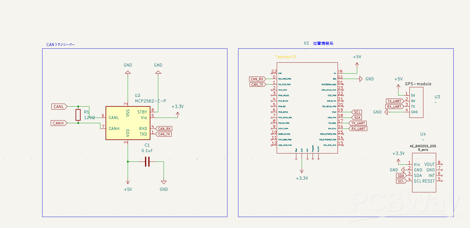 The Sensor Control Circuit also utilizes a Teensy 4.1 microcontroller unit. This board manages the GNSS module and 9DoF sensors through CAN and I2C communications. These sensors are the core components for the rover's autonomous driving and navigation capabilities.