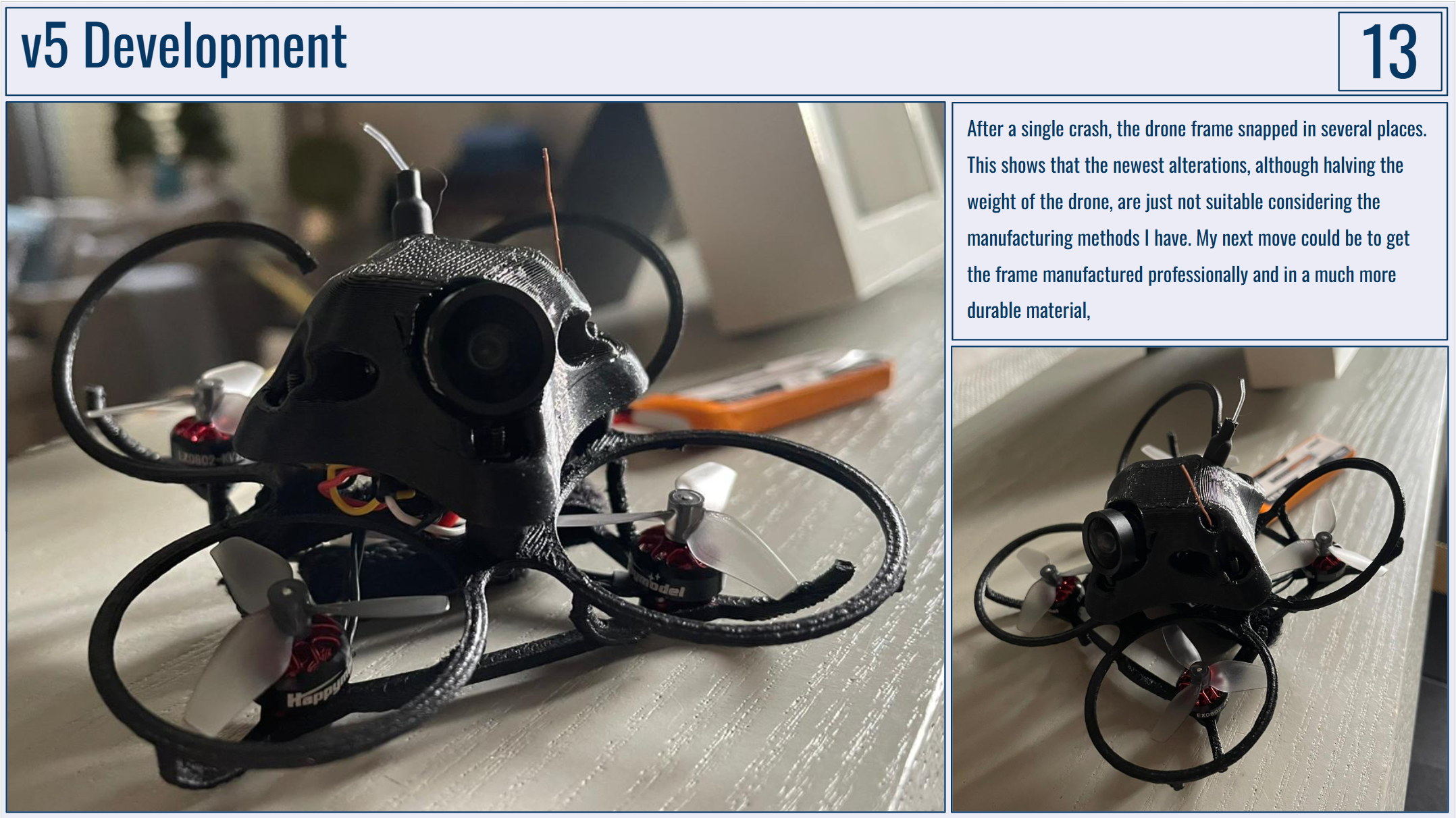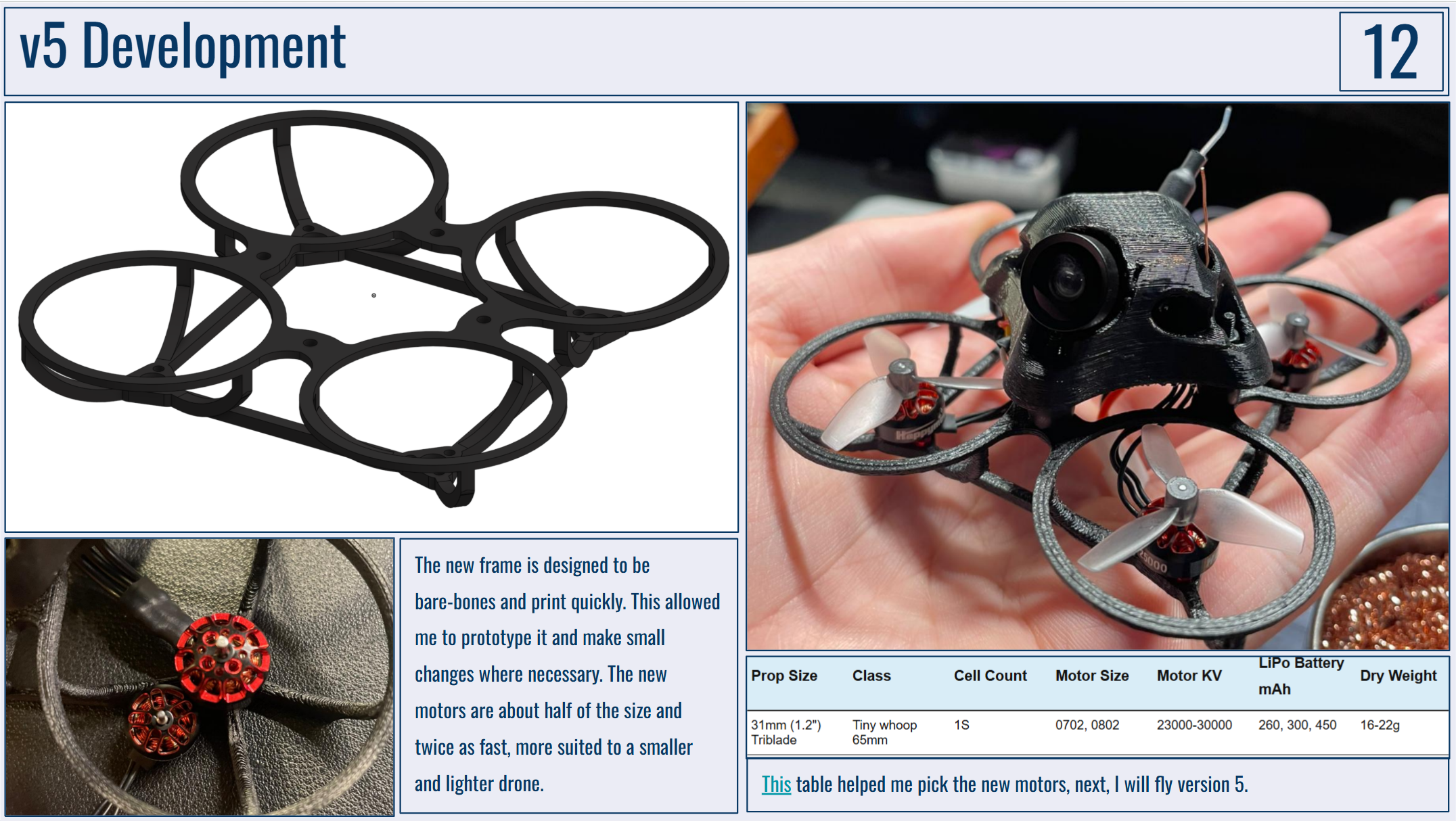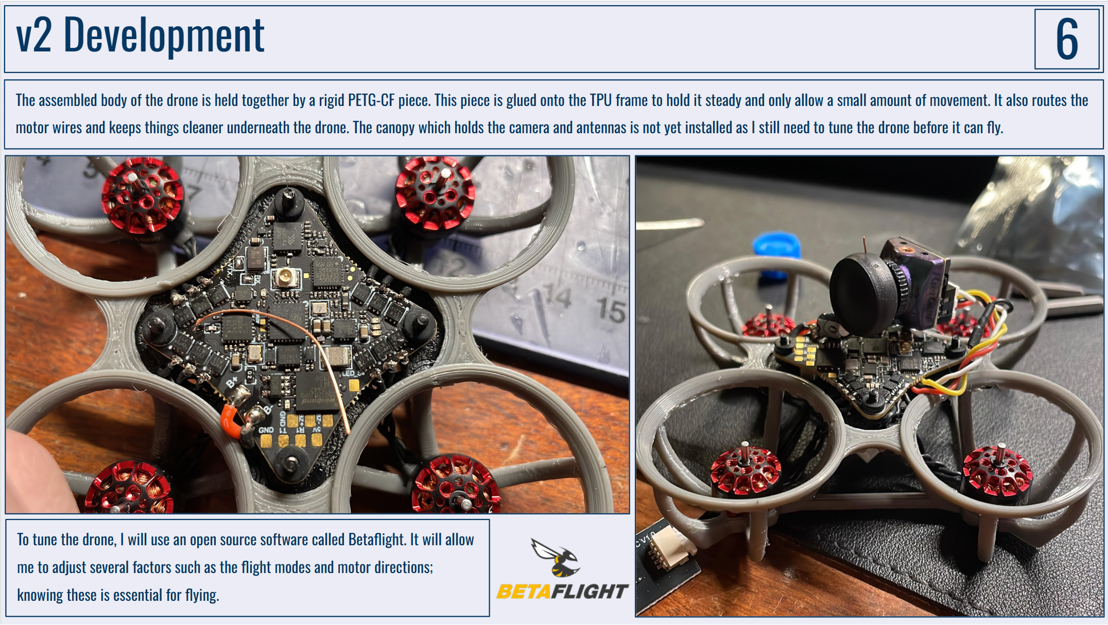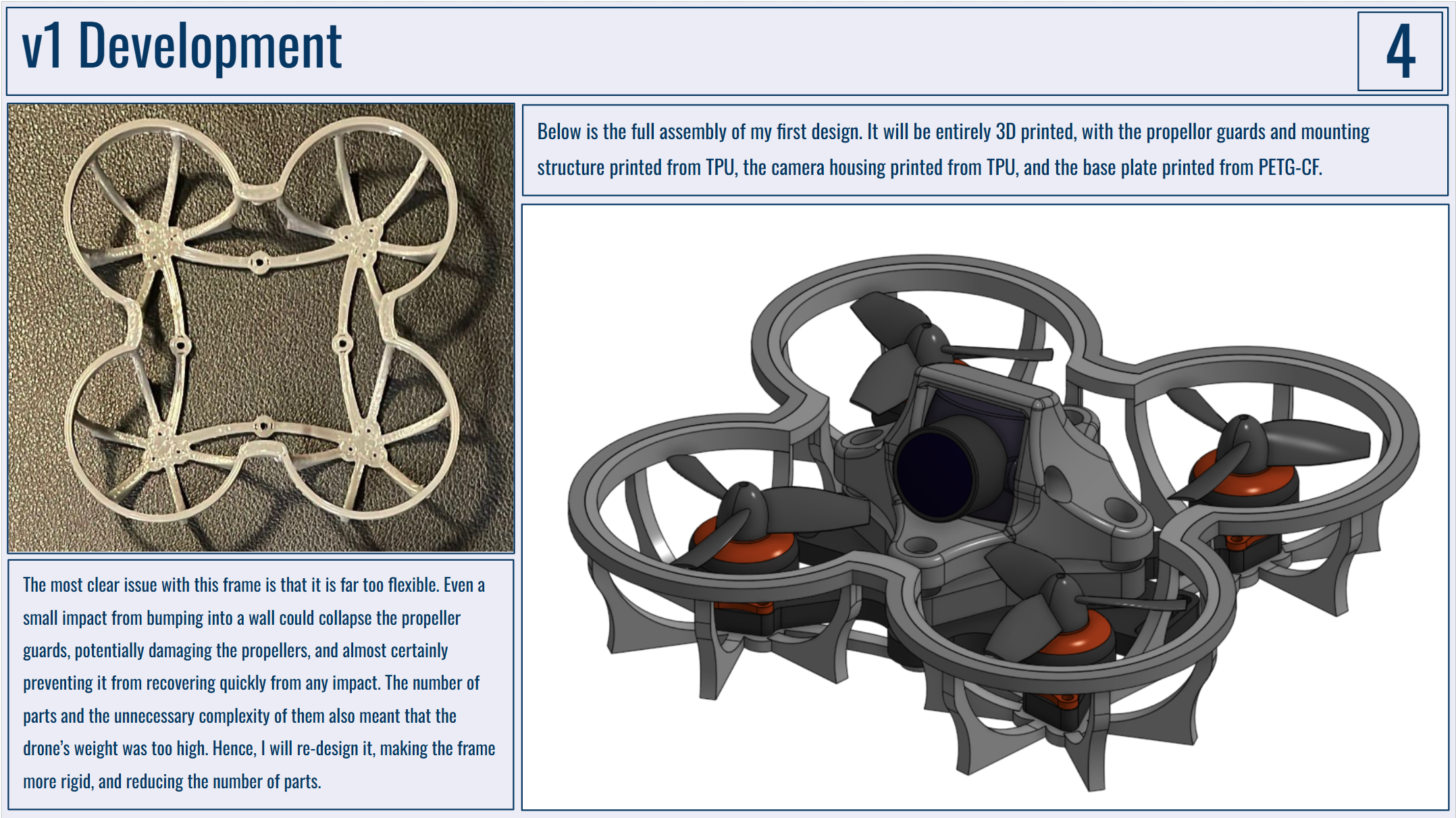 Below are my portfolio slides for this project. I would really like to have the drone frame manufactured by PCBWay as I just don't have the capabilities to make anything durable enough at home!