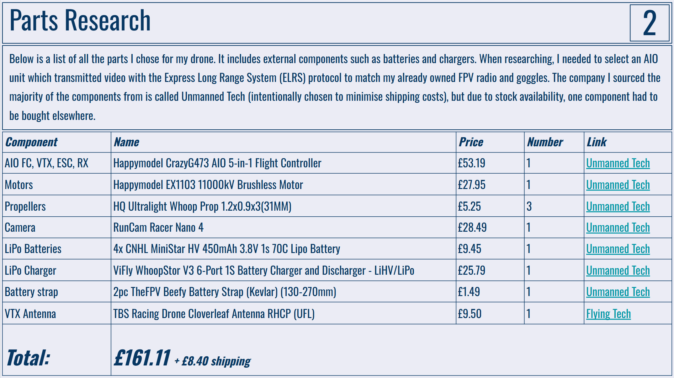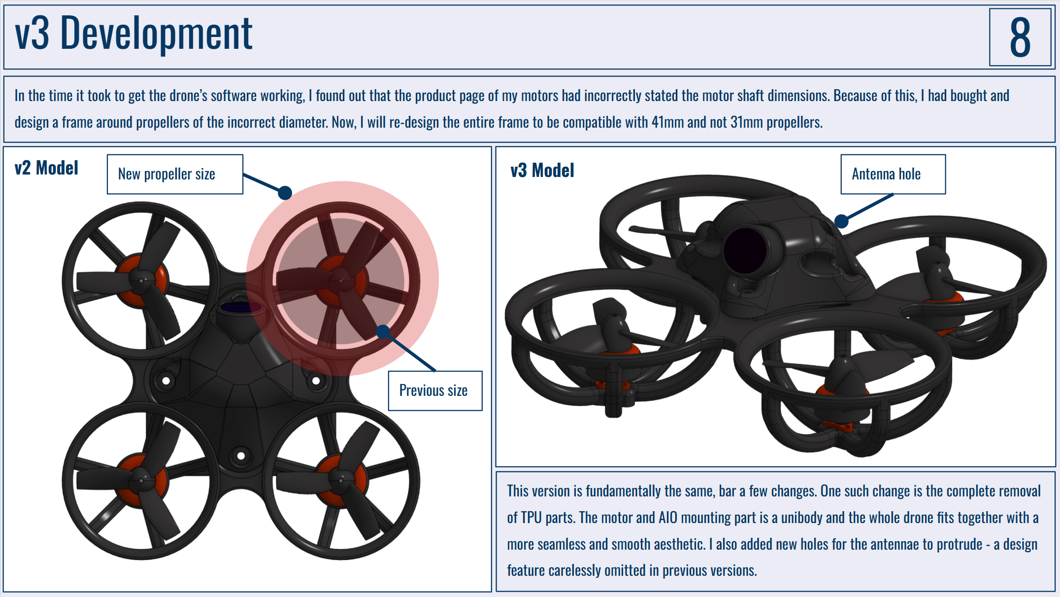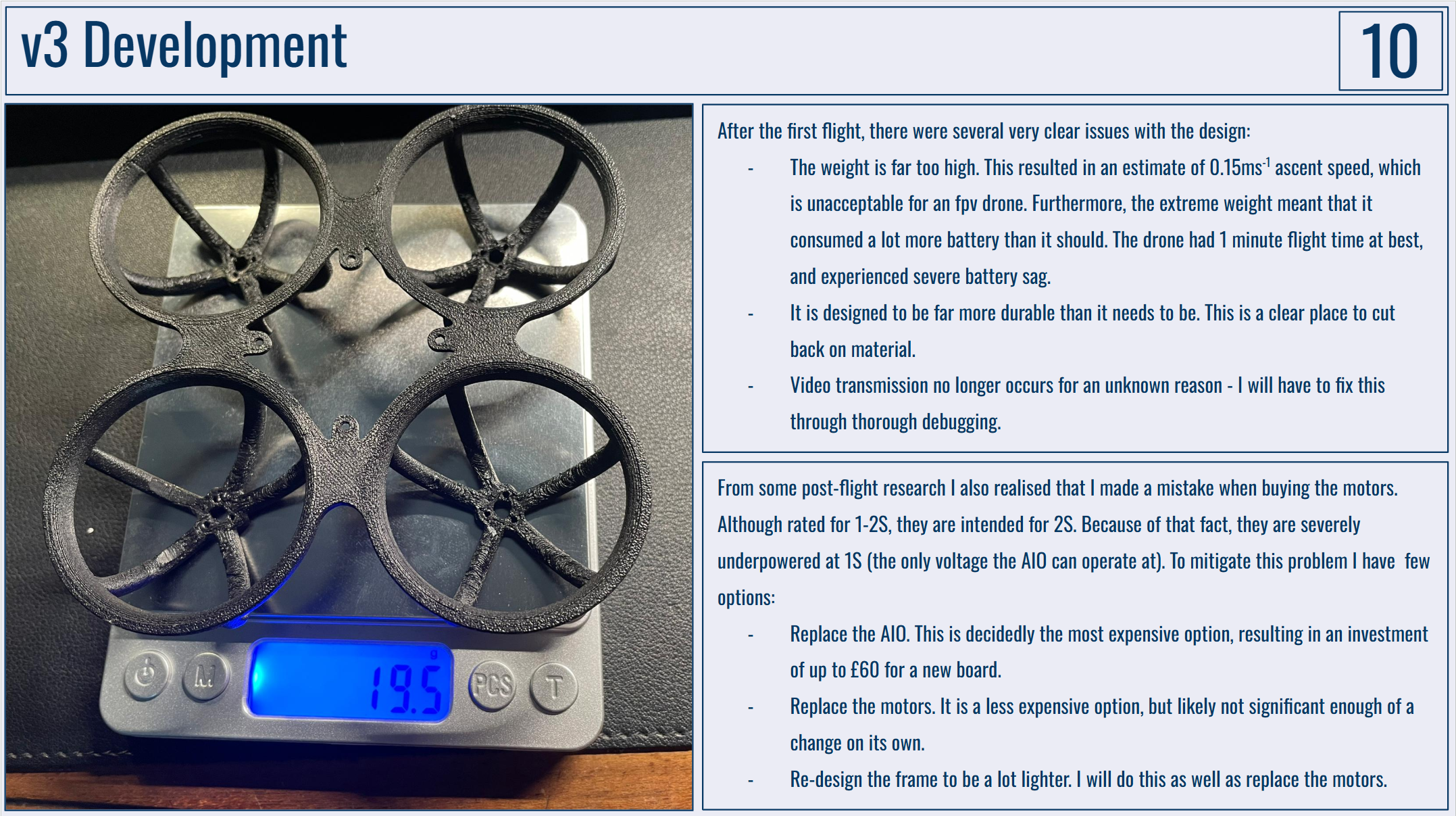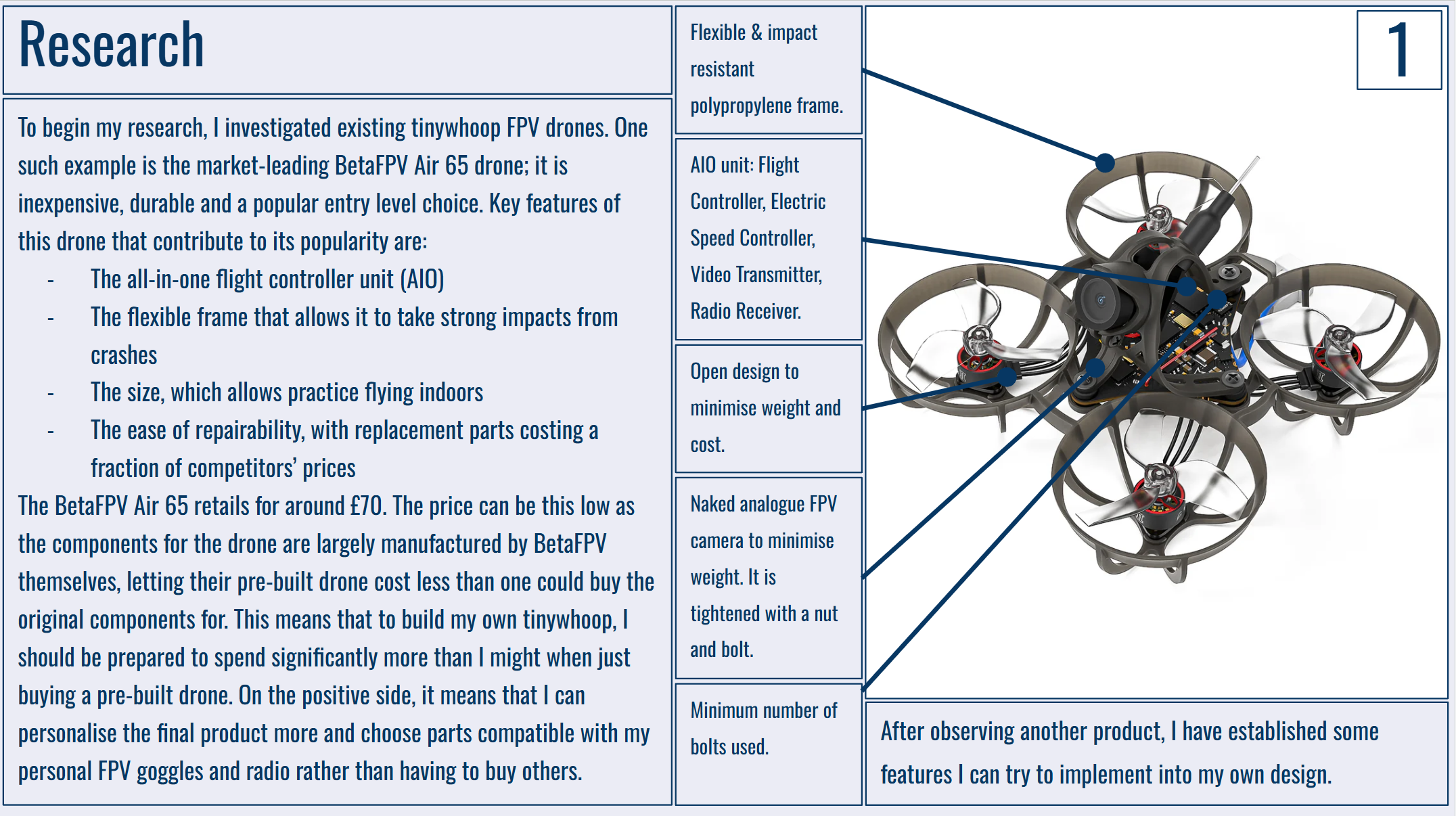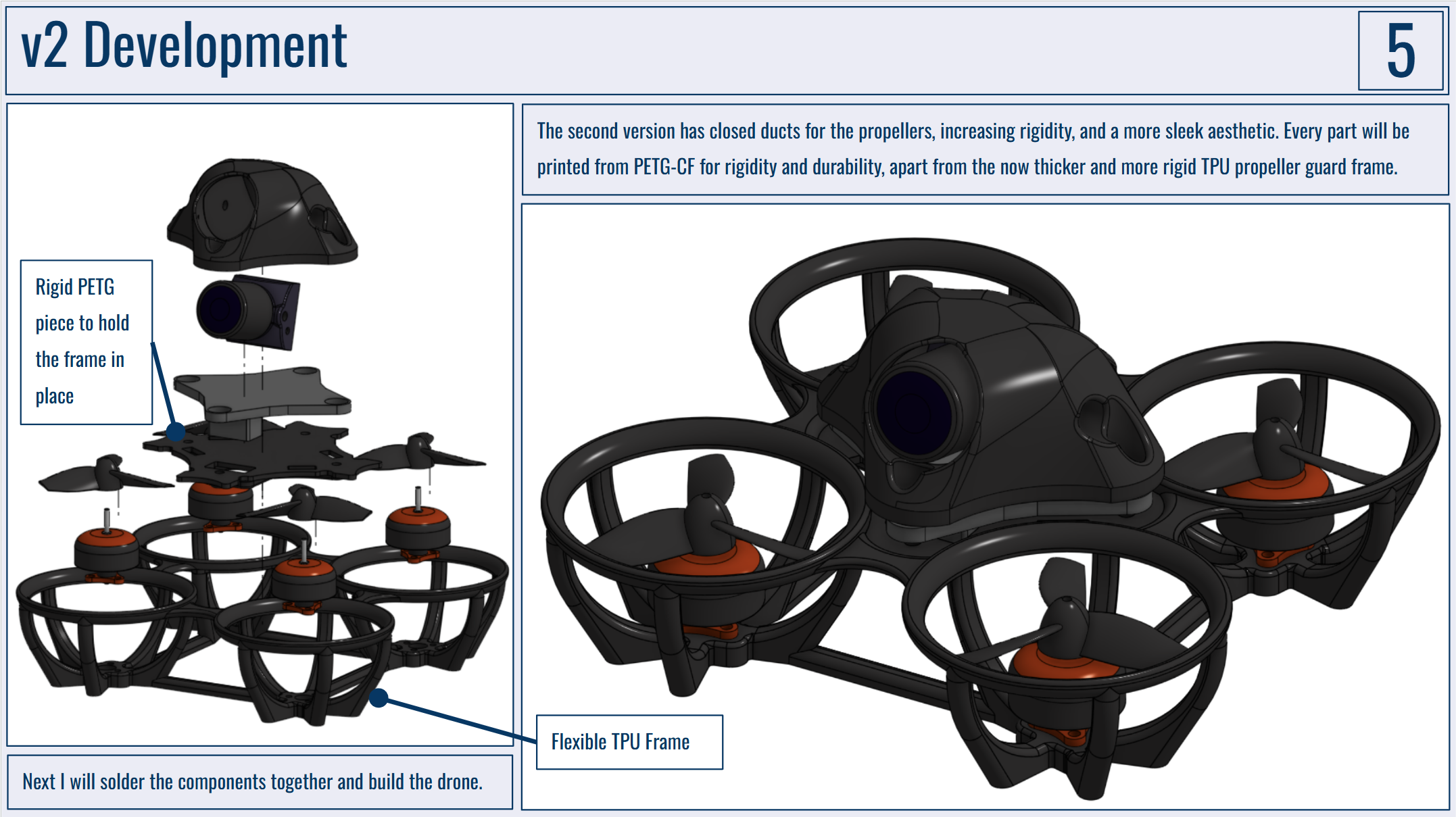 Below are my portfolio slides for this project. I would really like to have the drone frame manufactured by PCBWay as I just don't have the capabilities to make anything durable enough at home!