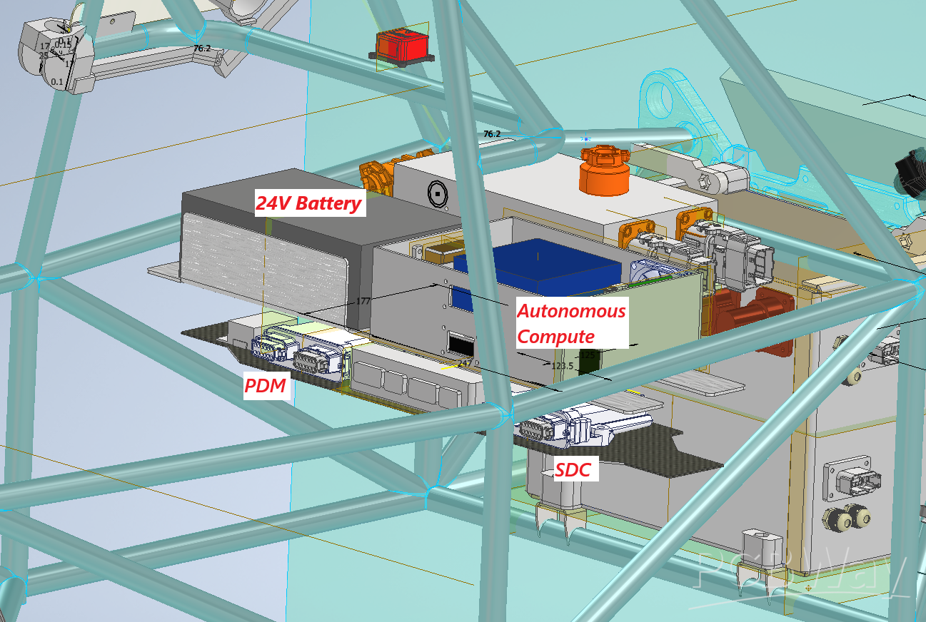 Embedded Systems Designs and Manufactures the low voltage power distribution, control and safety of the vehicle. This involves wiring design, Printed Circuit Board (PCB) design, and mechanical mounting of modules.