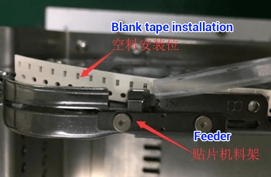 | 2. For each material that needs to be mounted, it is necessary to reserve a blank tape with a length greater than 50mm before it can be installed on the machine for production. Regardless of whether 1PCS or 1000PCS is produced, there will be 10-20PCS for each material to be removed to make enough space for the loading feeders,as shown in Figure 1. Figure 2 shows that the original factory has left enough blank length for the entire roll of packaging materials. (materials larger than 1206 size need to be manually patched after the materials are removed) | |||||||||||
